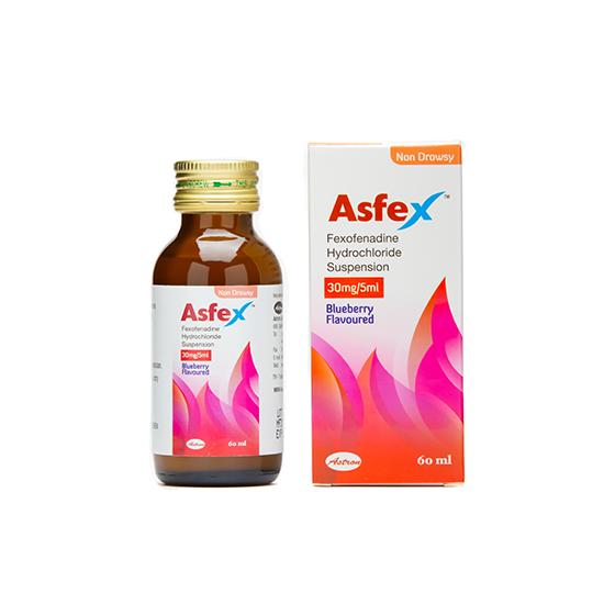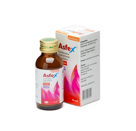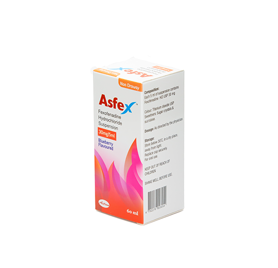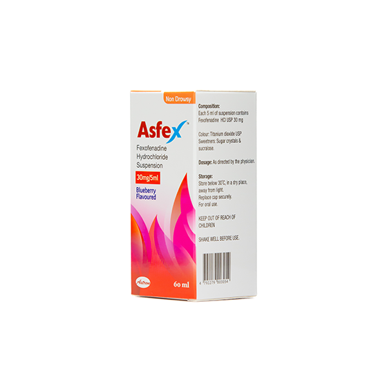 The active ingredient of Asfex suspension is Fexofenadine Hydrochloride USP 30mg/5ml